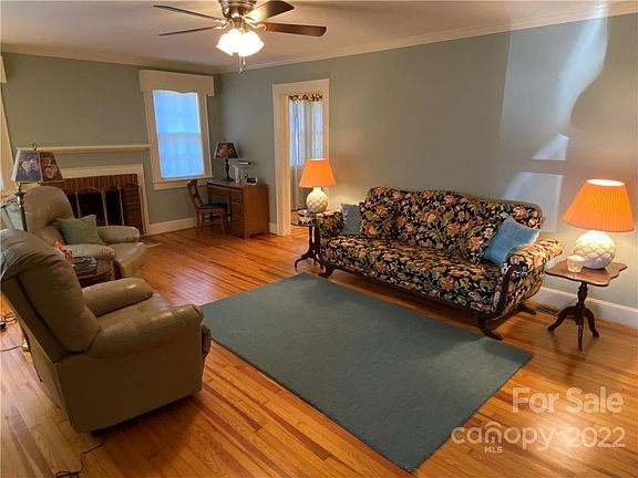 Charming, well-kept cottage, surrounded by trees is close to Uptown Shelby w/ easy access to highway 74. Updated and move-in ready. Newer roof w/ lifetime warranty against mold and mildew. Updated bath, updated kitchen w /new stainless steel appliances, refrigerator included and new built-in microwave. New paint throughout, new siding on outside of home. Updated wiring and plumbing. Previous owner used bonus room as 3rd bedroom! Spacious family room w/ beautiful hardwood floors and gas fireplace. Separate dining room. Closed-in back porch has stack washer and dryer included. Fully fenced, private backyard. Don't miss this one!