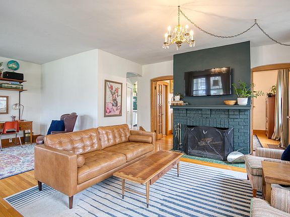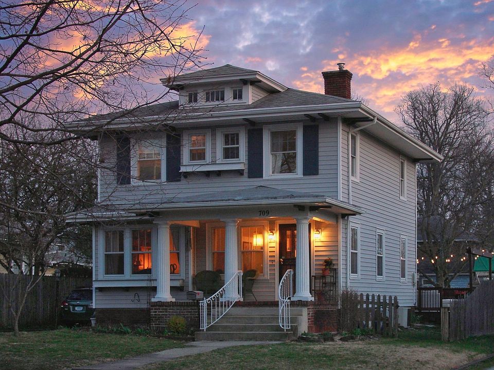 The Oakdale neighborhood welcomes you with its rich history and charming ambiance. As you step onto the covered front porch adorned with grand white columns, you'll feel the timeless allure of this home. Inside, the oversized L-shaped Living Room beckons with a gorgeous wood-burning fireplace, creating a cozy atmosphere perfect for relaxation. French doors adorned with historic glass windows lead you to the Dining Room, adding a touch of elegance to your gatherings. The upper level of the home boasts newly refinished hardwood floors, echoing the classic charm found throughout. Photo worthy retro bathrooms have been thoughtfully updated with modern amenities, blending the best of both worlds. Plus, the convenience of a laundry chute to the basement adds to the functionality of the home. Outside, a private driveway leads to a two-car garage featuring a new garage door 2023, providing ample off-street parking for you and your guests. The privacy-fenced backyard offers a tranquil retreat, complete with a newer deck built in 2022, perfect for outdoor entertaining or simply unwinding after a long day. Additional features include a whole house fan (attic fan) for efficient cooling and central A/C for added comfort during warmer months. The full, dry basement comes with a transferrable warranty, offering peace of mind and potential for additional living space or storage. Conveniently located within walking distance to Foster Park and Friendly Fox, you'll enjoy easy access to outdoor recreation and local amenities. Embrace the character and convenience of Oakdale living in this charming home.