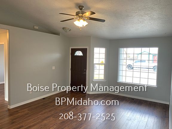 Beautiful 3 bedroom home in Kuna featuring gracious natural living room light, flowing right into the kitchen, beautifully accenting the dark plank floors. The u-shaped kitchen features stainless steel appliances, and a large dedicated pantry. This home features a split bedroom floorplan featuring the primary suite separate from the remaining two bedrooms and bathroom in the hallway to the right of the living space. The primary suite offers a large bedroom with a walk in closet and ensuite! This home features a large backayrd with a patio featuring an awning, as well as ample grass, and RV parking. home is just minutes from downtown Kuna and the highway. Tenant responsible for utilities. Two car garage and driveway. Washer and dryer hookups available. No pets please. No smoking. Professionally manged by Boise Property Management