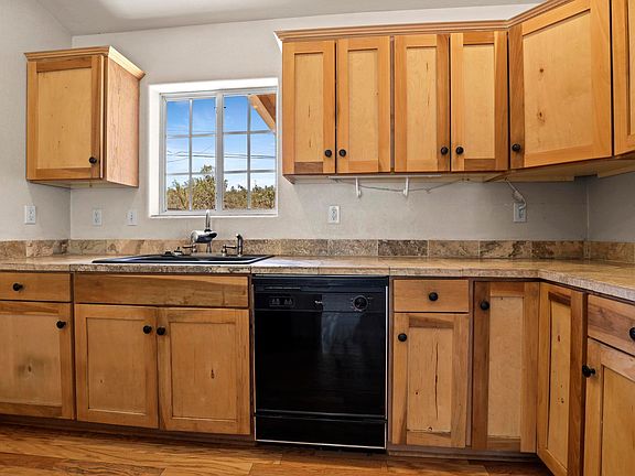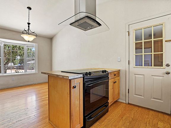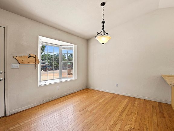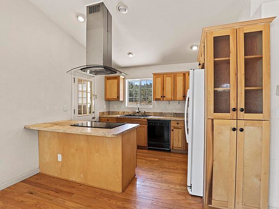 Darling delightful bright cheery home backing up against the National Forest. Home offers beautiful wood floors, three bedrooms, two baths, open kitchen/dining floor plan. Plenty of kitchen cabinet. Spacious living room with wall of windows and huge display shelf. Outside back yard has chain link fence with divide for more controlled pet activity or possible garden area. Garage is attached to house, making for easy access with groceries. No steps! Patio area outback., fruit tree - the one in the front has an abundance of plums. Curb appeal. Hurry on this one.