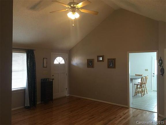Wonderful move in condition starter home, Large rocking chair front porch, vaulted ceiling in the great room with hardwood flooring, light and airy kitchen with white cabinets and large island. master bedroom vaulted ceilings walk in closet and hardwood floors, master bath with duel sinks, large soaking tub, sep shower. Laundry room with storage cabinets and sink. Large flat .90 acre lot with large storage building and covered patio area. This is a must to see.