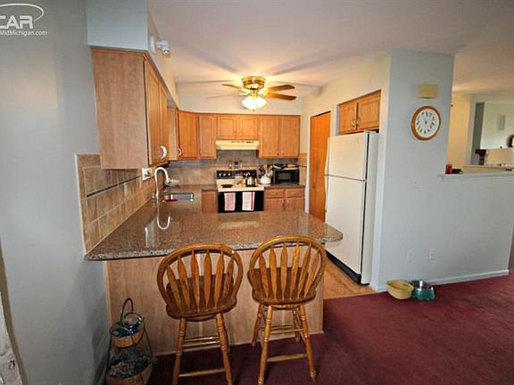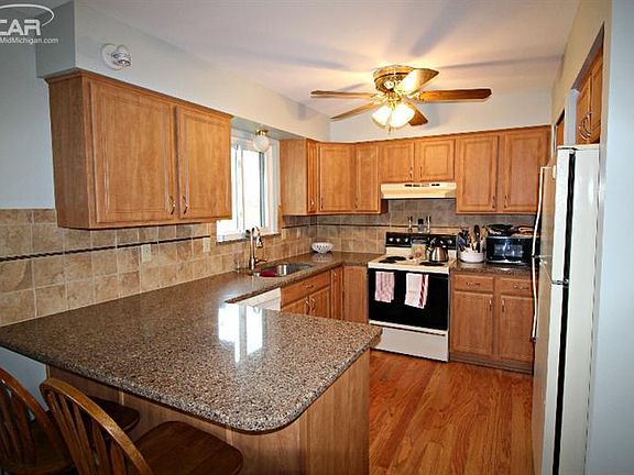 Light filled open floor plan with newly remodeled kitchen & bath. Granite, great room with natural fireplace. Some newer windows (14), over-sized garage with workshop. Furnace & central air updated (12). 2 full baths, recently remodeled bath has heated floor. Private backyard. Ready for move-in! Water is from the Clayton twp. municipality.