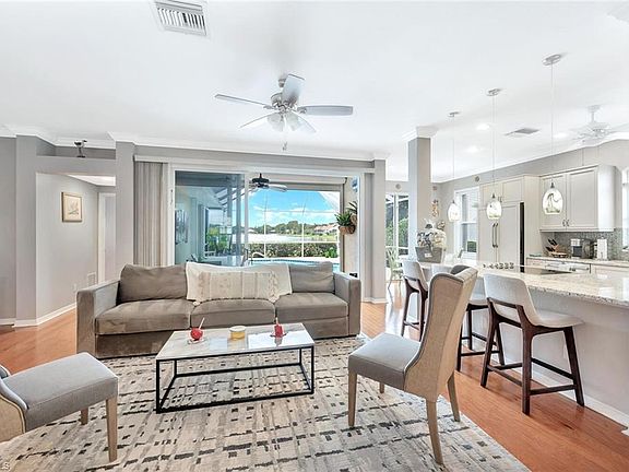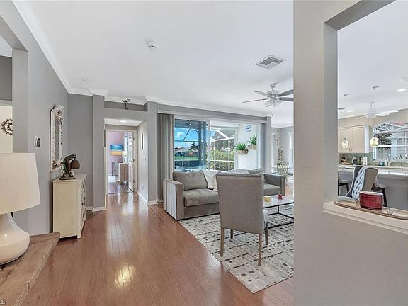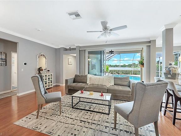 Fully Furnished 3 bedroom, 2 bath, 2 car garage Single Family pool home just minutes from downtown Naples. Enjoy all the features this home has to offer. A Heated swimming pool with a lake view, a pavered patio to layout in the Naples sun and a fully decorated home with everything you need for comfort. If you enjoy cooking this kitchen has a separate cooktop; combo oven and microwave; beautiful backsplash tiles and spacious countertops. Gorgeous flooring throughout this home. The owner's suite has views of the lake and an access door that goes to the pool area, mirrored closets and the owner's bath has dual sinks, walk in shower and picture window above the sink for extra lighting. The second and third bedroom have a shared bathroom with a combo tub and shower. The laundry room has a washer/dryer and extra cabinets for storage. The amenities included in this community has a Clubhouse with a full kitchen, Community pool, tennis courts and pickleball. So close to Gulf beaches, Fine dining and shopping.
