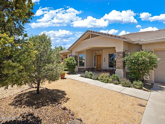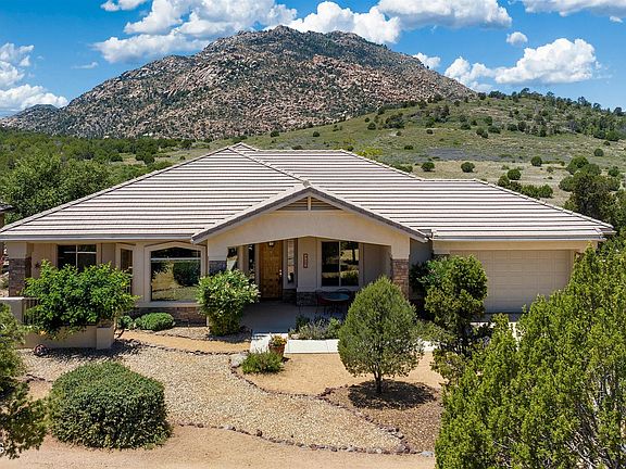 Spectacular View Home That Abuts Prescott National Forest & only 5 miles to town. Fabulous Location in Granite Park Ranch with unobstructed views of Granite mountain and private access to Granite Basin trails and lake.Single level split floorplan with tile flooring, Birch Cabinets and forever views. Kitchen offers breakfast bar, newer stainless appliances(2019), Jen Air range, large pantry and is open to great room for easy entertaining. The Great room with dual sided gas fireplace opens to the flagstone patio, built in BBQ, Spa Tub and Wood burning fireplace. Wake up to views of the mountain in the Spacious master suite. Master bath with his/hers sinks, garden tub & Walk in Snail Shower. Let's not forget about the 1 bedroom & 1 bath Casita/Guest house with attached 2 car garage