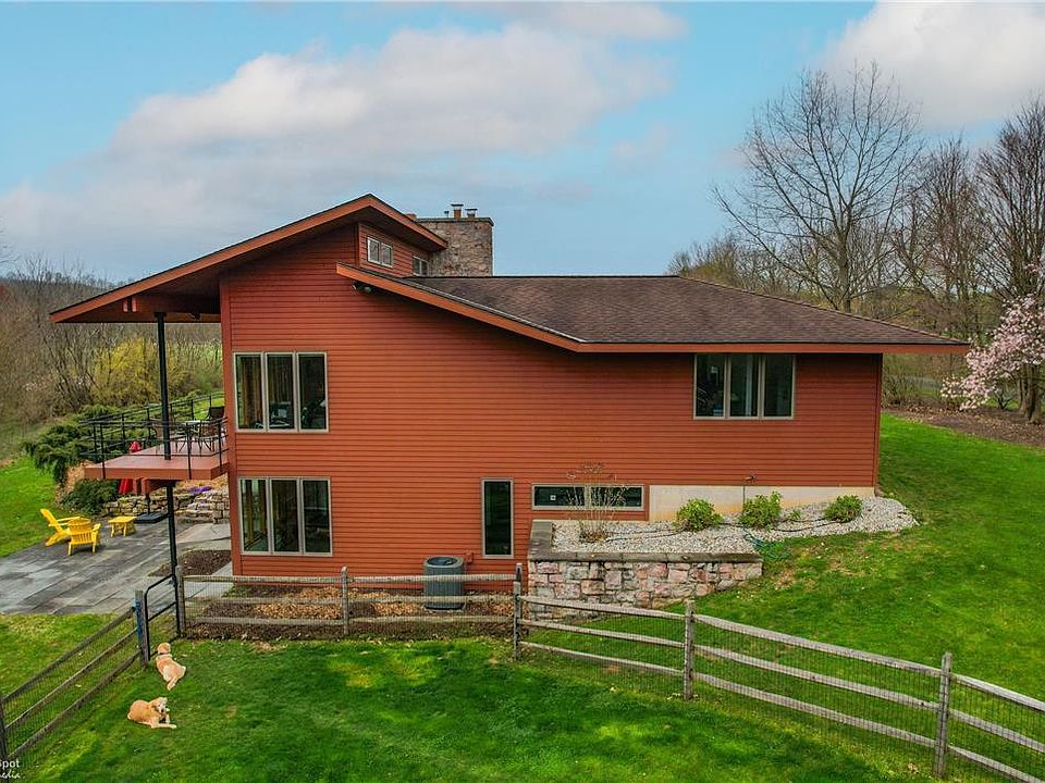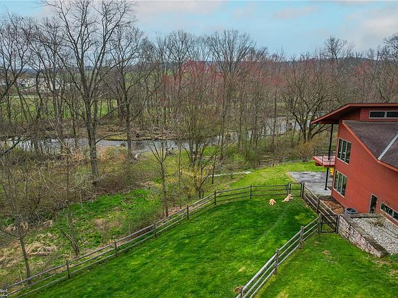 MULTIPLE OFFERS- DEADLINE THU 4/25 12PM. This is an absolutely extraordinary home- designed in a customized variation of Prairie Style to showcase its connection to the surrounding landscape and its 12 acres of privacy along Ontelaunee Creek. Enjoy the wonders of nature from within the home- or better yet, get outside and explore all that this property has to offer along both banks of the stocked stream and its 12 acres of breathtaking woodland. Inside, the home showcases fully-accessible living with a primary suite on the main floor and an elevator to allow movement between the floors with ease. Features many exceptional design details and craftsmanship throughout- including a massive wood-burning fireplace with floor-to-ceiling natural stone, a beautifully articulated ‘hanging’ staircase, a vaulted space with clerestory windows for indirect lighting, wonderful built-in elements throughout the home, and a astonishing assortment of large windows each carefully positioned to frame the spectacular outdoor views. Fabulous raised deck overlooking the entire scene! Within the lower level you'll find three additional bedrooms, a full bathroom, plenty of storage space and an exciting Family Room with direct access to the stone patio which leads down the ramped pathway which is a very short walk to the creek. Quality materials throughout this home- natural stone, cedar siding, and so much more w/ emergency generator. Call today for more info-