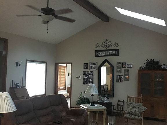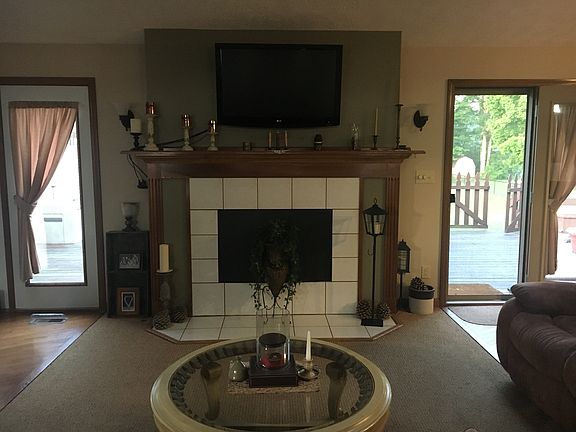 Light, bright & open describes this 3 bedroom, 2 bath brick ranch offering big great room with fireplace, cathedral ceiling, sky lights, & open to kitchen & dining area plus a great view of the woods. Master suite with full bath. sitting room & nice walk-in closet, split bedroom plan, over sized 2 car garage, whole house generator & wood deck overlook 1.4 acre tree lined yard. All this on a cul-de-sac lot and within walking distance of the High School.