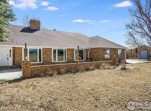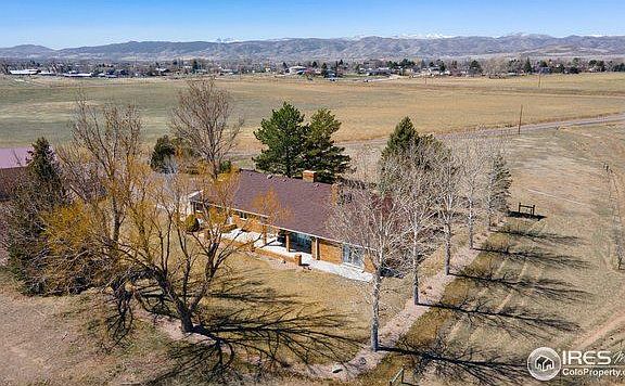 Brick ranch style home on 56+ acres. Open floor plan with large formal living & dining rooms, family room & 4 bedrooms on the main floor. There is a 80 x 40 shop & 3 loafing sheds. The shop has a cement floor, is heated and there are 2 large overhead doors. The home offers 360 degree views of the mountains & plains. There are 2 ponds on the property. 3 pastures are fenced & gravity irrigated. 1 share of North Poudre Water is included with the property.