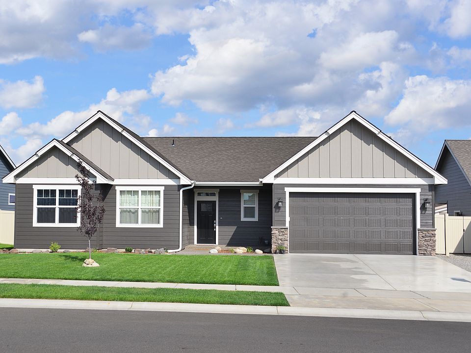 Price includes open concept plan, 9' minimum ceiling height on all floors, intelligent design, vaulted ceilings, 8' interior doors, 8' front door, sodded front yard, fenced and finished rear yard with full yard irrigation system, gas fireplace, granite kitchen countertops, whole house A/C, stainless steel Frigidaire Gallery appliances, Grohe faucets. The Deschutes has a classic concept with an updated look. This craftsman original includes stonework at the garage, horizontal and batten siding, and a recessed entry porch. The living spaces feature an open concept plan with vaulted ceilings at the living and dining rooms. The floor plan contains many functional elements such as a linen closet in the hall, oversized kitchen island, and a laundry room adjacent to the foyer. The guest bedrooms offer large windows which welcomes natural light. The spacious master bedroom features a walk-in closet with 5 piece master suite and water closet.