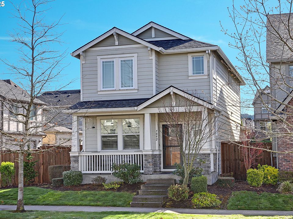 Beautifully updated and move-in ready, this 3-bedroom, 2.5-bath Craftsman-style home in sought-after Bethany Crossing blends comfort, style, and convenience! Nestled on a premium corner lot with a spacious backyard and a charming neighborhood green space behind, the home welcomes you with a covered front porch and a light-filled open great room featuring a cozy gas fireplace and elegant plantation shutters. The kitchen shines with an oversized Quartz island, stainless steel appliances, and fresh interior paint. Upstairs, enjoy a versatile loft — ideal for a home office or play area — and a primary suite with tray ceilings, dual vanities, a walk-in shower, and a generous walk-in closet. Two additional bedrooms, a full bath, and a laundry room with Samsung washer and dryer complete the upper level. A 2-car garage offers added storage space. Community amenities include access to a pool, fitness center, clubhouse, parks, trails, Bethany Village shopping & dining, the Hi-Tech corridor, and top-rated Beaverton schools (Sato/Stoller/Westview). HOA dues cover front landscaping. Thoughtfully planned community designed for effortless living — this home has it all!