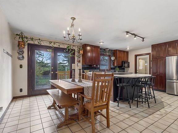 This breathtaking home is situated on nearly 5 acres of serene countryside! With 2,096 square feet of meticulously crafted living space, the interior boasts a grand foyer, a spacious living room adorned with large windows, a dining room with easy access to a splendid patio, and a chef's kitchen equipped with a large island, a tile backsplash, quartz countertops, and top-of-the-line stainless steel appliances. The upper level features two sizable guest bedrooms, a guest bathroom complete with a brand new jacuzzi tub installed in 2022, and a generously sized primary bedroom with double closets and a luxurious en suite full bathroom. The lower level is partially exposed, showcasing a massive family room complete with a sprawling built-in cabinet, a wood-burning fireplace with a stunning stone tile surround, and a cozy reading nook. The attached 2.5 car garage is easily accessible via a spacious breezeway. The exterior of the property boasts a magnificent tree line on either side, a large paver patio installed in 2013, and a vast open field at the back of the property. Additional features include a 36x24 pole barn with a fenced-in area, an extra-wide driveway with ample parking spots, and a 54x30 garage complete with its own furnace, air conditioning, and half bath. Recent updates include a new house furnace installed in 2019, a house water heater installed in 2020, newer roofs for all buildings, and a septic system installed in 2013. The property is zoned AG and conveniently located just 5 minutes from I-90 access, and within the highly sought-after Prairie Hill & Hononegah School System.