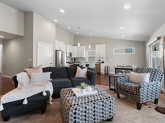 Welcome to the good life in Eagle Ridge! Quality Greenstone built all one level rancher. Stellar location near Forest Ridge Park and backing up to greenbelt space. Classic home only 6 years old with great architectural features. Enter this home and you’ll appreciate the soaring vaulted ceilings with dormer windows letting in amazing light. The kitchen is well appointed with ss appliances, single vessel sink, full tile subway backsplash, quartz and granite counters, and gas range. Great room has gas fireplace with custom tile surround and vaulted ceilings. Fully fenced backyard, full sprinkler system, and lovely patio space off kitchen for entertaining and relaxing. Gas forced air heat and central AC. Discover the Eagle Ridge community with 5 miles of walking trails, two parks, community movie nights, near multiple golf courses, and 10 minutes to airport, Air Force Base, downtown. District 81 schools. Amazing opportunity to live in this outstanding community! https://www.eagleridgelife.com/home/