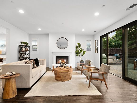 Nestled in La Costa Oaks North this exquisite 4-bedroom, 3-bathroom haven boasts a dedicated office space, a coveted downstairs bedroom and bath, plus an upstairs family room that could effortlessly transform into a 5th bedroom, ensuring versatility to suit your lifestyle needs. Step into the inviting ambiance of this meticulously crafted home, where the centerpiece is an expansive gourmet kitchen featuring an oversized center island that doubles as a gathering hub. Seamlessly connected to the family room adorned with a fireplace, it's the perfect space for entertaining or simply unwinding in comfort. Recently updated and turnkey, the home boasts fresh paint, new carpeting, and a seamless indoor-outdoor flow through a large sliding glass door to a rear yard with an outdoor fireplace and BBQ. Upstairs, discover the luxurious primary bedroom with a spa-like bath and a custom walk-in closet, your personal retreat within this inviting haven. Effortlessly marrying style with functionality, this home showcases a floor plan that's as practical as it is elegant. Its immaculate presentation resembles a model home, reflecting the care and attention poured into every detail. Built in 2014, this residence not only embodies contemporary charm but also resides within a top-notch school district, making it an idyllic choice for families seeking the finest in both aesthetics and education.