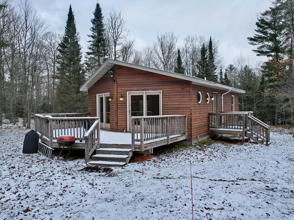 This cute home in Lake Laura Woodlands may be cozy, but has plenty of room for expansion! Your main level has an open concept living room to eat-in kitchen and 2 bedrooms with the primary having its own private ensuite bathroom. The unfinished walkout lower level is currently studded out for a family room but could also accommodate a potential 3rd bedroom. This home is on a combined 3.25 acre lot with 24' x 40' detached garage - great for storing all your toys! The neighborhood has easy access to snowmobile & ATV trails and is close to the Lake Laura public boat launch.