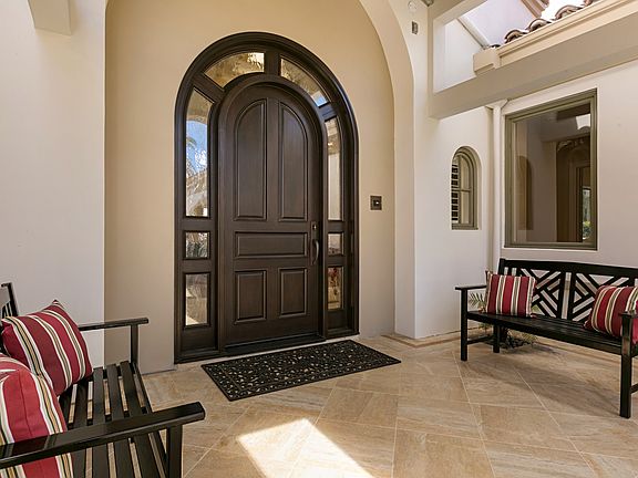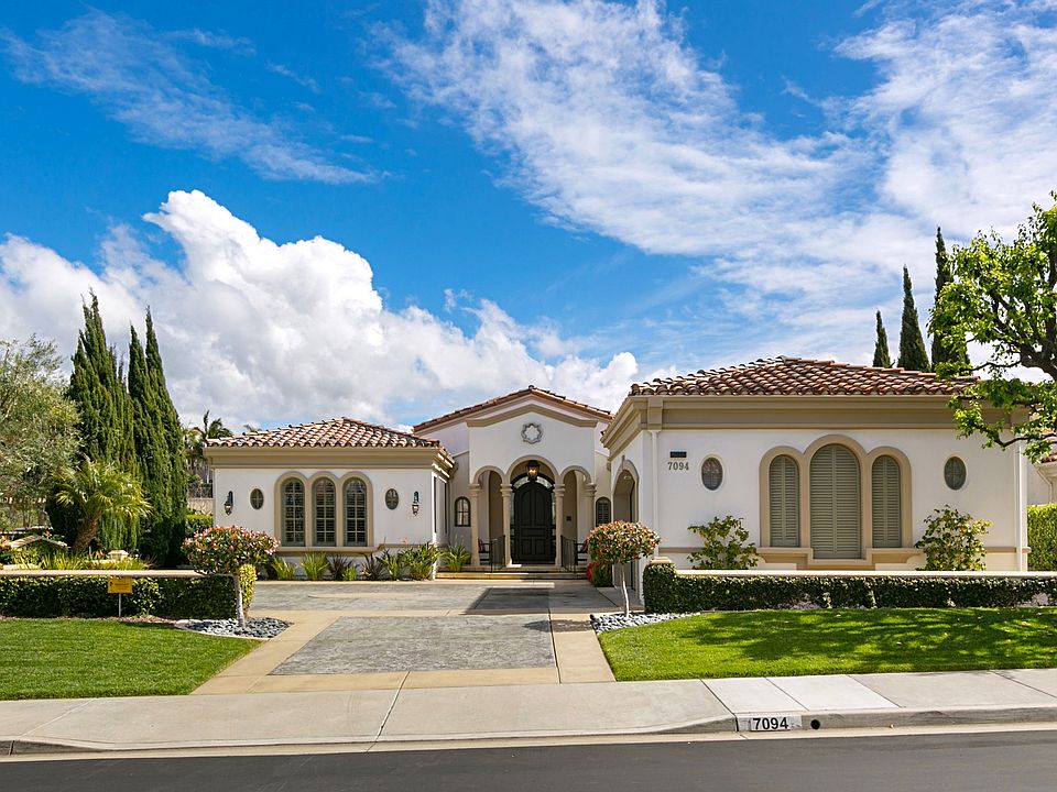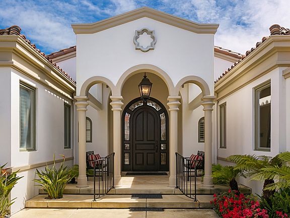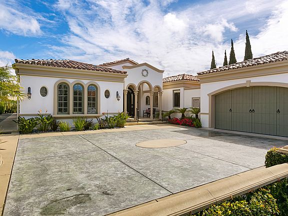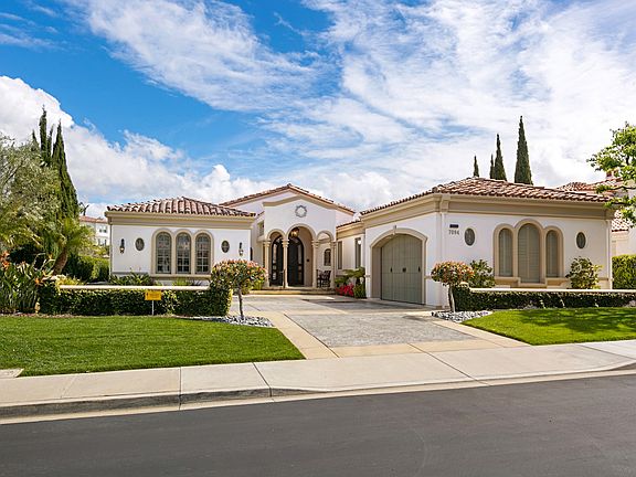 Paradise at Aviara Point! This luxurious, rarely available single-story 3 bedroom 3.5 bath overlooking the Park Hyatt Arnold Palmer designed golf course is a dream home in the high-end community of Aviara Point. This magnificent residence overlooking the 7th fairway, is graced with Cathedral ceilings, wall-to-wall windows, and is a haven for gazing at the best golf course views from the east side of this prestigious street of exclusively custom homes. The newly designed entry with custom front door, invites you to the open and bright living/dining room featuring a custom floor-to- ceiling window, framed by wood encased glass doors that lead to the newly professionally landscaped backyard--perfect for enjoying outdoor meals while taking in the endless panorama of tranquil golf course and mountain views. The light and bright den/family room boasts new wood look porcelain tile flooring, new glass rock fireplace with wood surround, wall to wall radius windows, and sit-down views of the mountains and 7th fairway. The chef's kitchen overlooks the den with new lighting, newer high-end appliances, granite counters, and a professionally designed pantry with custom organizers. In the divine master suite, you will find custom window coverings, newer custom paint, new upgraded carpet, and an opulent completely remodeled ensuite bath with a granite surround Hydrospa jetted tub, oversized walk-in separate granite tile glass shower, 3 shower heads including rain shower, privacy wall, and a built-in teak seat. Other features include a custom designed dressing area with Closet Factory floor to ceiling cedar-lined wardrobes, hampers, and custom drawer inserts. The conveniently located laundry room has been renovated and includes new granite counters and cabinetry. In addition, all secondary bedrooms feature ensuite baths. This home has been extensively remodeled and very well maintained. This is the single-story you've been waiting for.