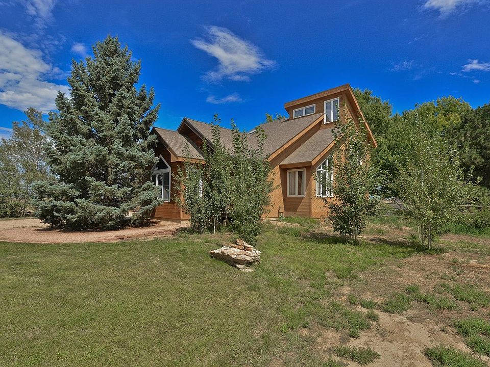 Hard to find acreage zoned AG - NO HOA on 2.5 Acres in unincorporated Weld County! Absolutely adorable 2 story with stunning view and features. Mahogany double entry doors lead to vaulted, open & bright living & dining rooms. Beautifully upgraded kitchen with custom granite, Thermador 36" professional dual-fuel range/hood, hickory cabinets, all appliances stay. Oak floors throughout, 1/2 bath & lovely bedroom on main floor. Plus 2 bedrooms & full bath with skylight upstairs. Huge garage with a/c & heat, unfinished basement with laundry room & big crawl space, newer furnace and central a/c, large deck for entertaining under the mature trees and private fenced back yard with amazing gardening area, 7x39 storage container included too!