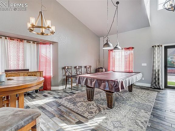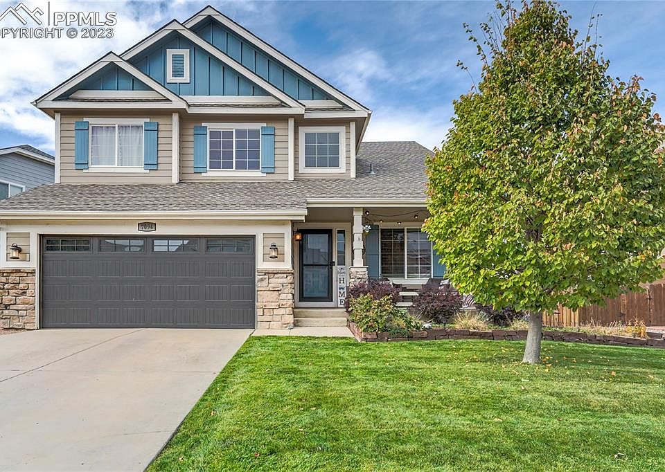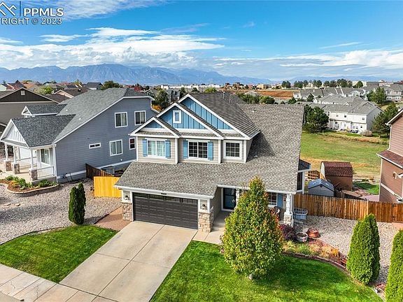Welcome to this captivating two-story home with a walkout basement, nestled in the sought-after neighborhood of Cross Creek. This remarkable residence boasts 4 bedrooms, 4 bathrooms, a two-car garage, an expansive living area spanning over 3000 SQFT, and the added charm of backing onto open space. As you step inside, you're welcomed by a generous formal dining room adorned with stunning Oak hardwood floors that extend throughout the main level. Tall vaulted ceilings flood the room with natural light, creating an inviting ambiance. The kitchen beckons with its seamless design, featuring a striking granite island, ample cabinet space, a pantry, exquisite backsplash, and an awe-inspiring panoramic view of the majestic Pikes Peak. Multiple vantage points within the property provide access to these breathtaking mountain views, including the composite deck—perfect for hosting summer BBQs. Venture upstairs to discover a spacious loft that doubles as an office and three of the four bedrooms, including the primary suite. The primary suite offers a 5-piece bath with unobstructed views and a walk-in closet. The basement was finished in 2021, adding another dimension to the home. It features an additional living room, a generously sized bedroom, and a luxurious 5-piece spa-like bathroom, a space that feels like a dream come true. This bathroom includes a rainfall shower with beautiful tile and stone work, a soaking tub, dual sink vanity, and an additional walk-in closet with wood shelving that offers an abundance of space for your wardrobe. The walkout basement opens to a private patio beneath the deck, leading to a vast backyard with endless possibilities for your enjoyment and outdoor activities. Conveniently located near Fort Carson, Schriever, Peterson, COS airport, and a wide array of shopping and dining options, this home combines functionality with style effortlessly. Don't miss your chance to own this gem. Schedule your showing today and make this property yours!