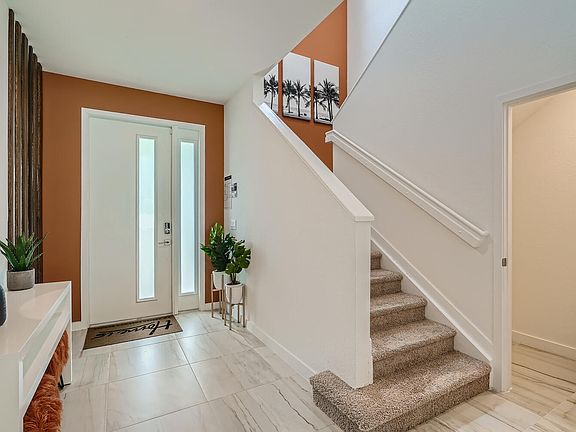 MODEL HOME for sale! The Ponte Vedra plan features 5 bedrooms, 4 full baths, loft, impact glass windows and concrete block construction on both levels! The interior ''Haven'' package includes glacier gray shaker cabinets, quartz kitchen countertop and 24'' porcelain tile throughout the first floor living areas. This home features custom decor features, kitchen appliances and washer/dryer. Furniture is not included. CALL FOR A TOUR AND MOVE IN SPECIALS - Restrictions may apply* Pictures, photographs, features, colors and sizes are approximate for illustrations purposes only and will vary from the homes as built. These are not of the actual home but are similar to the home being built.