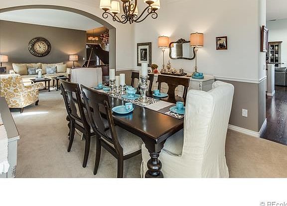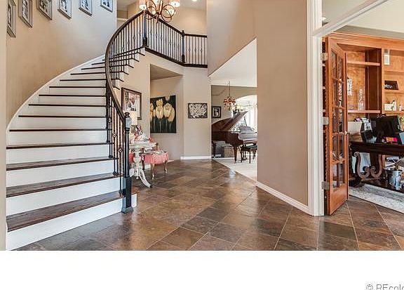 Stunning two story with finished walk out basement in the very desirable Castle Pines North community. This 5 bedroom, 5 bathroom home sits beautifully on a quiet cul-de-sac with great curb appeal. Updated features include refinished dark wood floors, custom paint, kitchen updates and more!