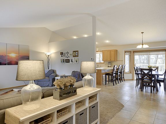 Beautiful 4 bed 2 bath 4 level split with 3 car garage in quiet neighborhood; easy access to 694/169 and within a minute drive of Arbor Lakes. Recently updated with new carpet, paint, and outdoor deck off kitchen/dining room! Oversized master suite with large walk-in closet. Includes newly renovated lower level patio walkout entertainment room with fantastic wet bar and gas fireplace. Located on a private cul-de-sac and sits on a wooded lot which is especially tranquil when in full bloom.