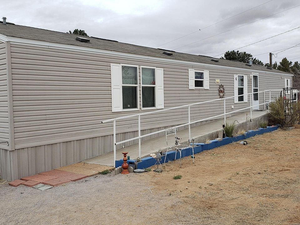 Large fenced corner lot, with newer 2 bedroom/2 bath mobile home and large detached workshop. Workshop has 2 garage doors for entry and steel support for motor lift. Plenty of room for your RV's and horses to run around. Don't miss out on this opportunity. Mobile home is in great shape and is ground set with a concrete ramp entry. Beautiful views are always appreciated.