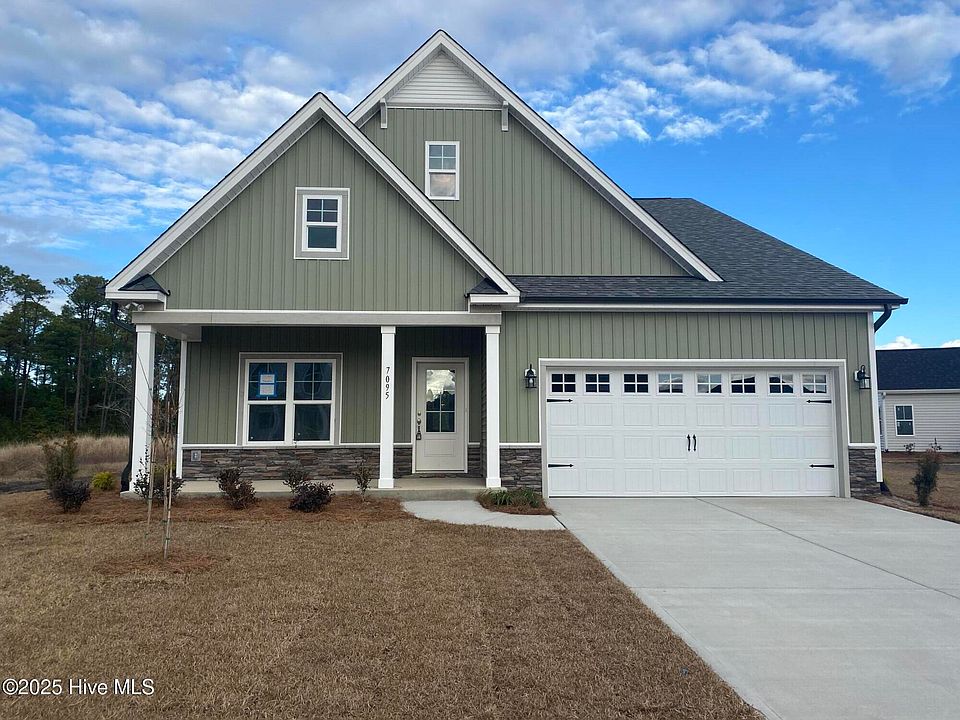 Under construction is The Madison from American Homesmith, a charming 2-story cottage-style home boasting 4 bedrooms and 3.5 bathrooms. This home welcomes you with an open-concept layout that highlights a formal dining room and a generously sized kitchen overlooking the family room and breakfast area. Every aspect of this home has been meticulously planned and executed. The kitchen is a masterpiece, featuring a spacious center island, elegant quartz countertops, tile backsplash, and stainless steel appliances, including a natural gas range and a convenient pantry. The bright and airy family room seamlessly flows into a generously sized covered porch, perfect for relaxation and entertaining. Tucked away on the back corner of the home, the owner's suite is a haven of tranquility. It features trey ceilings, walk-in closet, and a spa-like bathroom with a fully tiled walk-in shower, soaking tub, two vanities with quartz countertops, and a private water closet. Completing the first floor are a convenient powder room and a laundry room situated off the garage. As you ascend to the second floor, you'll discover ample space for family and guests. Bedroom number 2 is a suite in itself, boasting a private bathroom, while bedrooms 3 and 4 share a well-appointed hall bathroom with double vanities. This home boasts additional features such as wide plank laminate floors and crown molding throughout the first-floor living areas, hardwood stair treads, and a tankless gas water heater. Situated in the established community of Grayson Park, you'll enjoy a serene natural setting and a range of amenities, including a pool, clubhouse, tennis & pickleball courts, playground, and sidewalks throughout. Grayson Park offers the perfect blend of tranquility and convenience, with Leland and downtown Wilmington just minutes away, and several beautiful beaches along the southeastern NC coast, including Oak Island, Wrightsville Beach, Holden Beach, a Ocean Isle Beach, all within a 30 min drive.