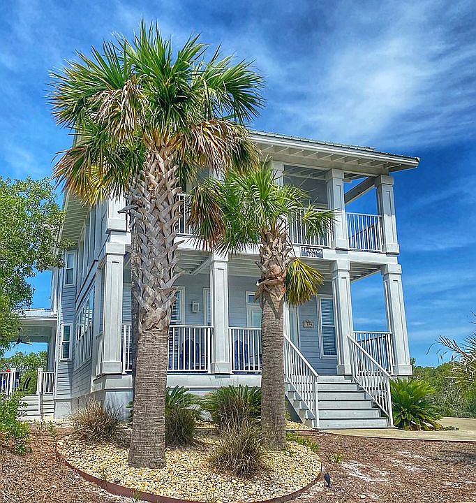 BEACH VIEWS FROM THE TOP! ROOF TOP WIDOWS WALK, used as 3rd bdrm: unobstructed 360 degree views, HUGE LOT..BUILD MORE! BIG LOT ALLOWS for EXPANDION or ADDITIONAL BUILDING for MORE RENT! Beach Cottage w/2 large balconies, wood floors & BEACH DECOR. UPSCALE gated community Kiva Golf, short walk to Beach boardwalk & pools, dining. Kiva known for HIGH elevation & near boating/bay. RENTALS: $26k-$30k