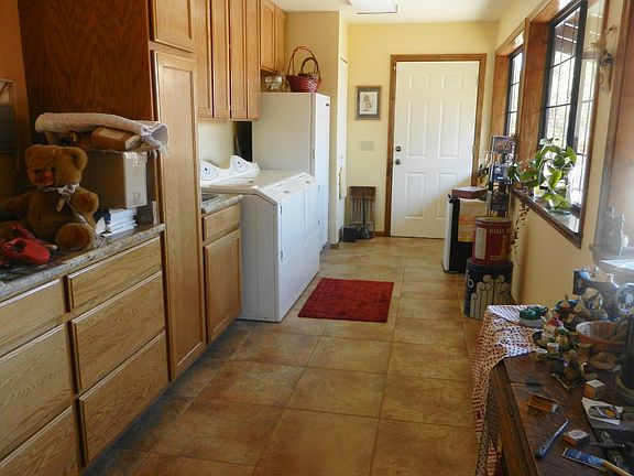 Located north of Williams, off Spring Valley Rd on 20 acres. Additional land available. Lots of windows, open kitchen and dining, spacious laundry room and a wrap around porch. Family room remodel in 2005 including wood floors and Levolor blinds. Tile floors through main living areas. Granite counter top upgrade in 2012. Extensive, maintenance free including creek and pond.