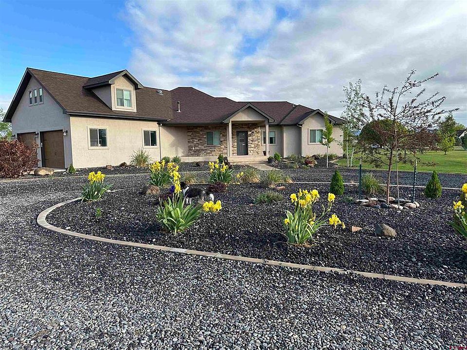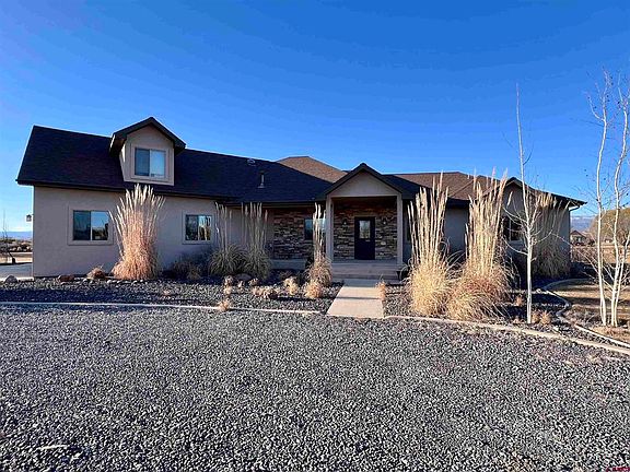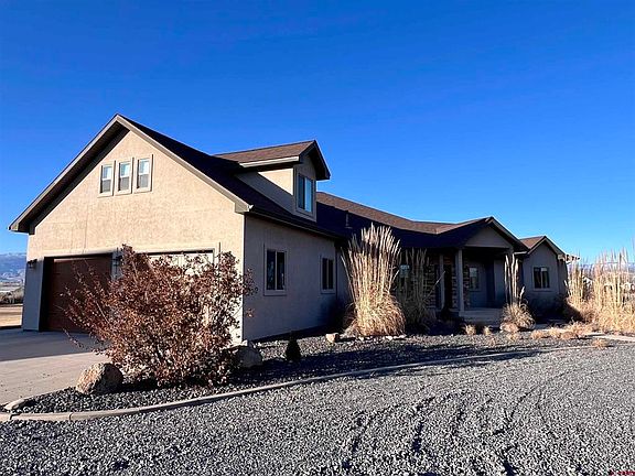 Welcome home! This exquisite 5-bedroom, 3-bathroom luxury home sits on a sprawling 2.73+/- acre lot in a highly sought-after neighborhood, offering an unparalleled combination of elegance, comfort, and functionality. Conveniently located less than an hour from both the Montrose and Grand Junction airports, this property provides easy travel options while still offering the peace and privacy of a rural retreat. Step inside and be greeted by tall, vaulted ceilings throughout, enhancing the open and airy feel of the home. The spacious master suite is a true retreat, featuring a luxurious en suite bathroom and an oversized walk-in closet. It also offers private access to the newly constructed four-seasons enclosed porch, the perfect place to relax and enjoy breathtaking views of the stunningly landscaped grounds and surrounding mountains. The thoughtfully designed kitchen is equipped with stainless steel appliances, ample counter space, and custom cabinetry, making it ideal for both everyday living and entertaining. Andersen French Doors in the dining room provide a secondary entrance to the four-seasons porch, seamlessly blending indoor and outdoor living. A large mudroom offers plenty of space for a washer and dryer, while a generously sized bedroom with its own closet and private bathroom above the attached garage adds flexible living arrangements. Outdoors, this property is a true oasis. The lush yard is meticulously maintained, featuring a Rain Bird Sprinkler System with 14 zones that ensure the landscaping of trees, pampas grass, flowers, and the expansive lawn remains vibrant. With unlimited irrigation water provided through the HOA, the grounds have access to all the water they need. The spread-out yard is perfect for gatherings, play, or simply enjoying the serene natural beauty. Sandhill cranes and geese frequently visit the property, adding to its charm and connection to nature. For recreation, this home is ideally situated near the Devil’s Thumb Golf Course and Cedaredge Golf Course, both just a short drive away. Outdoor enthusiasts will love the proximity to hiking trails, ATV routes, Black Canyon of the Gunnison National Park, and the Grand Mesa National Forest. Whether you’re seeking adventure or tranquility, this property offers the best of both worlds. Additional highlights include a spacious shed, a large detached garage with an unfinished apartment upstairs (perfect for storage or future customization), forced air heating and cooling, and abundant storage throughout. This remarkable property combines luxury living with practicality in a prime location. Don’t miss the opportunity to make it your own—call us today to schedule your private showing!