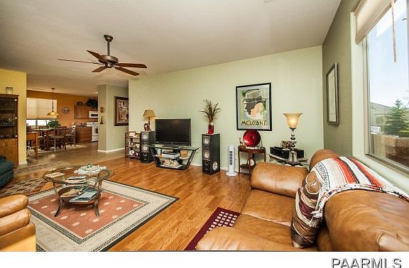Immaculate home in Prescott Valleys premiere golf community upgraded everywhere! New exterior paint in 2010, interior paint 11, extensive new flooring (tile, laminate & carpet) & custom window treatments! Spacious master suite, raised height dual vanity, large walk-in closet. Open floor plan, raised ceilings, spacious kitchen & pantry, stainless fridge. Extensive landscaping front & back multiple patios, golf course views from backyard, tile roof, epoxy floor in garage w/insulated door.