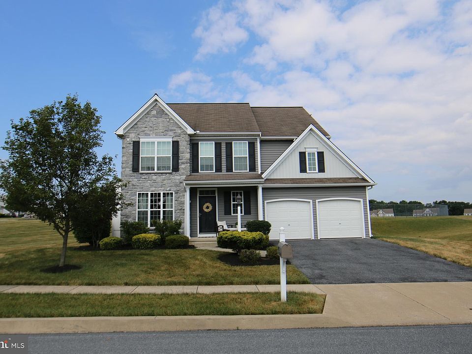Spring Hill, Swatara Township four-bedroom two story with 9’ ceilings throughout the main level and a refreshing floor plan that is smart and highly functional. Spacious kitchen with large center island, stainless steel appliances, granite kitchen counters, hardwood floors, breakfast area and an English garden room with beautiful casement windows that overlooks rear yard and large stamped concrete patio made for outdoor summer living. Formal dining room with trayed ceiling and crown molding, open living room, family room a wall of windows and gas fireplace, first floor laundry and stunning windows throughout. Second floor game room loft that can be utilized numerous ways or converted to fifth bedroom. Master suite with huge walk-in closet, master bath with soaker tub, walk-in shower, double bowl vanity and second walk in closets. Two car garage, full unfinished basement and multi zone gas FHA with central air condition. Spacious corner lot that backs to township park and is centrally located with easy access to Rt 322 or Colonial Park Area. Wonderful community with views and great walkability!