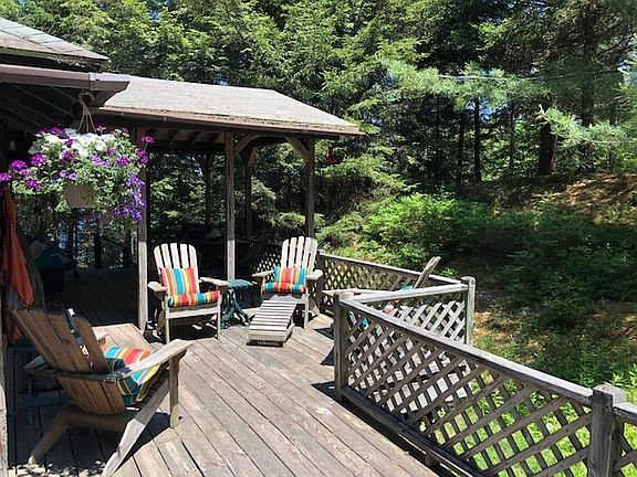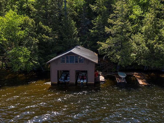 This family compound on Upper St. Regis includes a two-story boathouse with a second story "great room" boasting wonderful views of water and mountains. Watch the famous sailboat races during the season from this vantage point. There are 5 cabins starting with the main camp which has' 3 bedrooms and 2.5 baths and a guest lean-to for the pleasure of sleeping close to nature. The stone fireplace is an ideal setting for evening marsh mallow roasts and conversation. The property is on 8.2 acres with 500 feet of shoreline and a sandy swimming beach It is one of the few road access properties on Upper St. Regis.