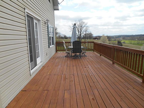 3.64 AC/HOME - One-of-kind setting with a panorama view. Excellent condition, traditional home w/3 or 4 bedrooms or family room, 3 baths, lots of storage. Main floor with open floor plan, kitchen/dining/living room combo, 1 bedroom & 1 bath. Large master bedroom with full bath & walk-in closet. Walkout basement w/family room or 1 or 2 bedrooms, lots of storage. Deck on 2 sides. Older barn for yard equipment etc. Located just off of blacktop. Price $179,900.00.