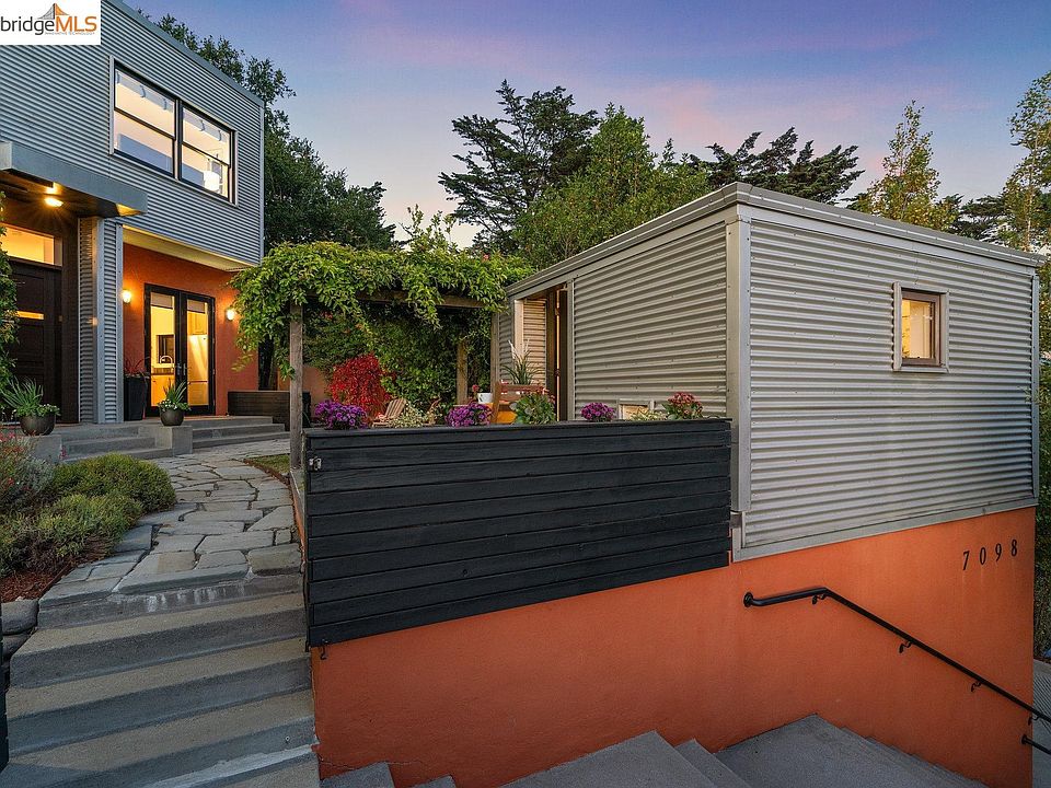 Perched on top of Montclair in the Oakland Hills, this sophisticated modern urban style oasis provides a balanced lifestyle of privacy and tranquility. As you enter the property, you are welcomed by a magical lush garden and patio area overlooking the breathtaking views of the SF Bay, Bay bridges and Lake Merritt. The secluded garden is a perfect retreat for relaxing while taking in the spectacular views and stunning sunsets. The main level of the home features a stylish open concept living room and dining area combination boasting 10 ft. ceilings, large picture windows and captivating Bay views. The sunny contemporary kitchen has concrete countertops, stainless steel appliances and beautiful French doors that open out to the charming garden. A laundry room and half bath complete the main floor. Upstairs there are three bedrooms with SF Bay Views, including the primary suite and two additional bathrooms. A fantastic bonus/flex space has many possibilities and could be used as a home office or yoga studio. Other highlights include polished concrete floors, hardwood floors, radiant heat, and a garage with ample storage. Near Huckleberry and Sibley regional parks and just minutes to Montclair Village. Located in the Orinda school district. Do not miss this truly unique home!