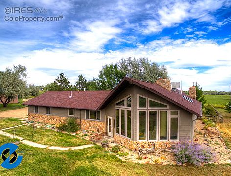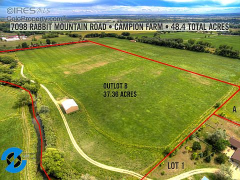 Live on your own private preserved open space w/ nearly 50 acres and a custom built home just SE of Rabbit Mtn. A fantastic location ready for horses w/ spectacular mountain views! Borders Highland Ditch providing year round water and wildlife. End of road privacy with hundreds of trees. Home has many interior upgrades and newer energy efficient windows and siding. Outbuildings include a loafing shed for horses, a 40x50 metal barn and a large hay barn. One valuable share of Highland is included!