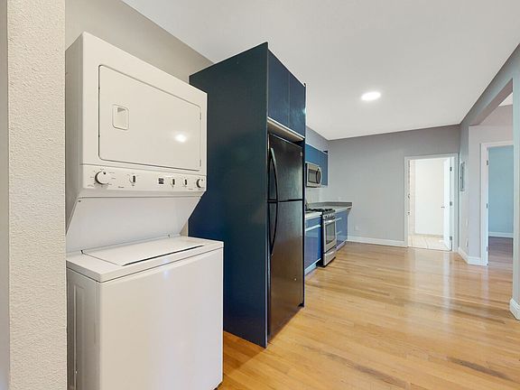 - The kitchen includes gas range, refrigerator, dishwasher, microwave, stackable washer and dryer.