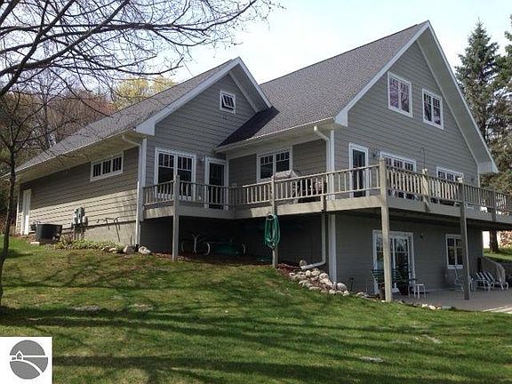 Enjoy the beauty of Clam Lake from the expansive deck or the patio on the lower level. Just an 8 min. boat ride into Torch Lake. This completely rebuilt home has it all! 5 bedrooms, 3 baths, 1st floor laundry, a bonus room and a detached garage for boat storage. Central air for those hot summer evenings, a sprinkling system. The finished lower level has it's own bedroom and bath opening onto the cement patio just a hop, skip and jump into the water. The large kitchen with a pantry, all stainless appliances, and large eating area make it a delight to entertain. Permanent dock. Swim raft and some furnishings nego. Bonus room 25 x 14, not included in sq. footage.