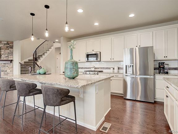 Welcome to this stunning 4-bedroom, 4.5 bathroom home in the desirable Aspen Reserve community, offering over 4,500 sq ft of beautifully designed living space. From the moment you enter, you’ll be impressed by the thoughtful layout and high-end finishes throughout including the grand spiral staircase. The gourmet kitchen is a chef’s dream, featuring ample counter space, new premium appliances, a large kitchen island, and an incredible amount of cabinet space, not to mention a spacious walk-in pantry. The open concept means the kitchen flows seamlessly into the living and dining areas - perfect for entertaining! Upstairs, a generous loft offers flexible space for a second living area, office, or playroom. The expansive primary suite includes a luxurious en-suite, 5-piece bathroom and an oversized walk-in closet. Whether you need a playroom for the kiddos, a movie night dream set up, or a space for out-of-town guests, the finished basement adds even more versatile living space. No matter where you find yourself in the home, you're sure to enjoy year-round comfort with dual-zone heating and A/C systems. Outside, the backyard features a spacious patio perfect for summer barbecues and entertaining as well as a large shed for extra storage. Let's not forget about the three-car garage of which completes this exceptional property. This home truly has it all, space, function, and style! Come home to 7099 E 123rd Place and elevate your living experience.