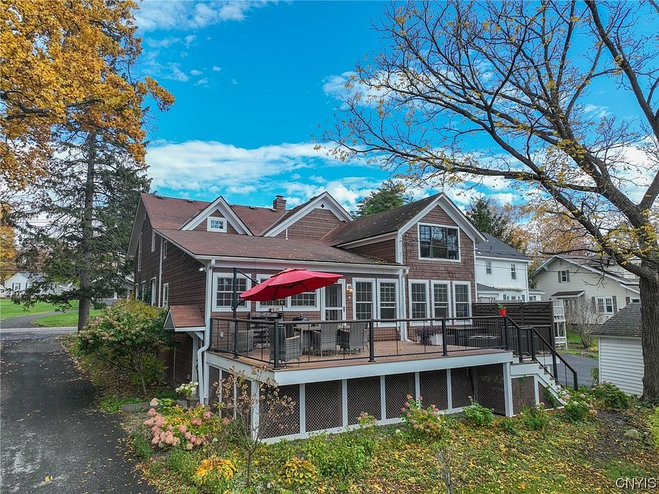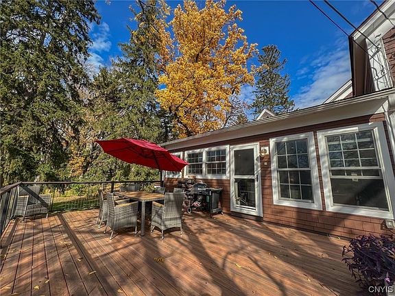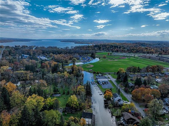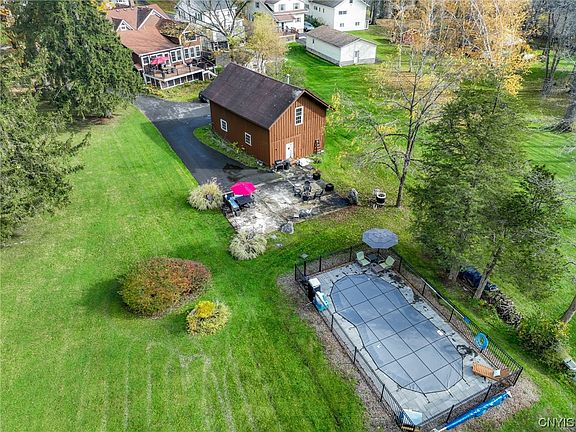 This stunning 5bed, 3bath home exudes timeless elegance and charm. As you enter, you'll be greeted by the beautiful foyer that seamlessly leads you to any area of the home. The vaulted ceilings adorned with classic architectural details add to the charm and ambiance of the home. The open concept kitchen features modern appliances, ample counter space, and a large center island perfect for culinary enthusiasts also addition seating for entertaining. Aside the kitchen is the spacious living area, creating an inviting space for gatherings. Beautiful hardwood floors that flow throughout the home. The back deck offers a view of the backyard and the Owasco Inlet that meanders through the end of the property. For those seeking outdoor entertainment, this home offers a barn that can be used for storage or hobby space. The back patio and inground pool, provide a refreshing oasis for hot summer days. Additionally, a private dock at the inlet offers direct access to Owasco Lake, allowing you to embark on boating adventures and enjoy the beauty of nature. This home blends old-world charm with modern conveniences, creating an exceptional opportunity to live in a truly remarkable setting.