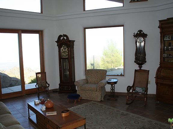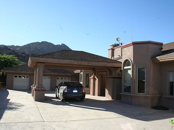 This custom built home is one for the books. The size, the attention to detail and the views all stand to make this place magnificent. Formal living room, formal dining, kitchen that is open to the family room, all bedrooms are ensuite, master bedroom has dual bathrooms along with dual closets, office with built-ins, 3 car garage, 1500 sgft shop/barn (not zoned for horses) along with RV garage. All of this and the most amazing views of the Coachella Valley you will ever find. The home sits behind the gates of Royal Carrizo but is not subject to the CC&Rs nor does it pay the monthly HOA fee.....only a small fee once a year to cover gates and road use. The home has a private well, a self maintaining generator, water storage tanks.