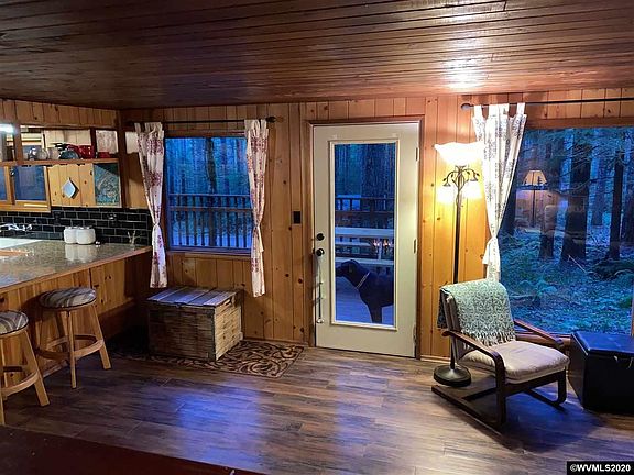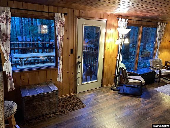 NICE DETROIT CABIN just a 15 minute walk to lake. 2 living areas, 3 bdrms-2 with exterior doors & patios. 2 baths, 1 1/2 kitchens, fireplace & wood stove. May be used as 2 sep. units, w/separate entrances. Old growth views from every room. Updates include flooring, gas range, insulation, on-demand water heaters, w/d, septic, electric, low main. deck. Most furnishings included. Woodshed w/firewood. Gated. USFS land w/ fees. Not for full time living. Lovely home in a special place! Sold as is. Cash.