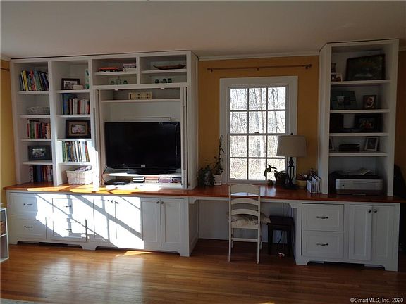 Secluded setting w/neighbors on private country lane. Appealing Cape w/open flr plan. FR w/fireplace and built-ins, Formal DR with fireplace (wood stove insert) plus Eat-in Kitchen w/adjacent closet pantry. Large level lot, deck, gardens and open porch over-looking patio. Refinished hardwood through-out, heated Garage, Outbuilding, Buderus boiler, generator panel with upgraded electric service & workshop. Walk-in attic and full basement both with lots of storage. Water views of private pond. New mini splits and bathrooms. New replacement windows.