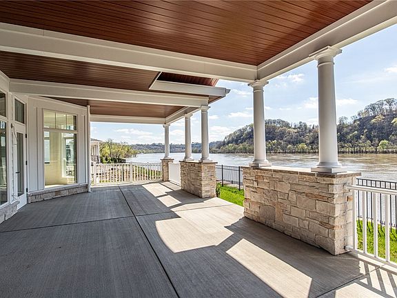 Perfectly sited, Shoreline waterfront residences at The River’s Edge of Oakmont are simply the finest luxury estate parcels available in the Pittsburgh metro market. Each of the 10 highly coveted lots enjoy an exclusive position along the bank of the most captivating stretch of the Allegheny River. With only a limited number of residences available, this is a rare waterfront opportunity. The Reynolds model, designed exclusively for Shoreline & inspired by coastal design, features an elegant yet relaxed floorplan that flows from room to room taking in the natural elements through large windows & sliding glass doors. The expansive main level covered porch is one of the home’s finest spaces with unparalleled views & a soothing vibe. High-end finishes, an elevator & a spacious owner’s suite make it a special place to call home. River facing porch on the 2nd level. Renderings are for marketing purposes only; may depict options/upgrades not included in price of the home, grading may differ.