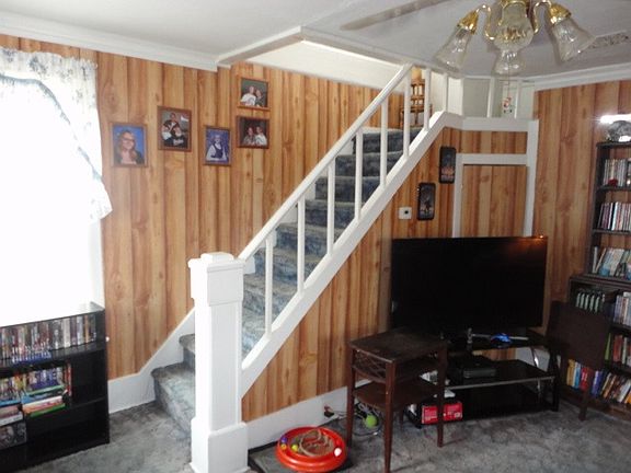 A nicely kept small 2 bedroom home with living room, dining room, 1/2 bath and nice kitchen and laundry down. Upstairs has 2 small bedrooms and full bath. Above ground pool in yard, but needs new liner.