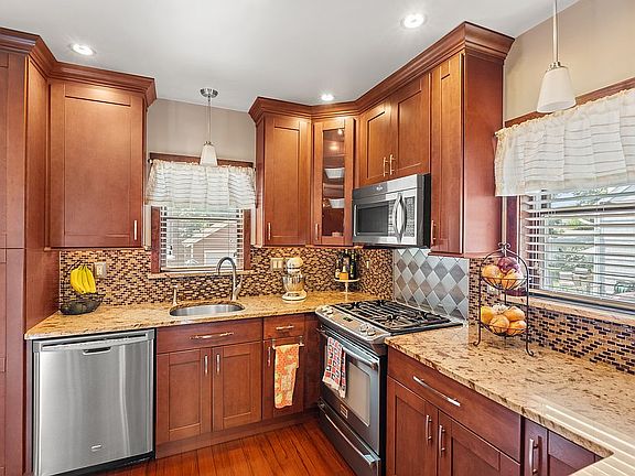 Beautiful colonial on a quiet dead end street, walking distance to the train! This home has bamboo flooring throughout the first floor with an updated kitchen, including granite countertops. Right off the dining room, step out onto the deck which leads to the spacious backyard with an above ground pool, beautiful landscape, and a paver patio and driveway. As you walk up to the second floor you will find the newly updated full bathroom and three bedrooms. From the second floor there are pulldown stairs to the attic, which provides a significant amount of storage. Downstairs you will find a finished basement, including a family room, full bathroom with radiant heat flooring, and laundry room. The exterior of the house and oversized shed were recently painted and the garage has new vinyl siding. There is gas baseboard heat and central air conditioning.