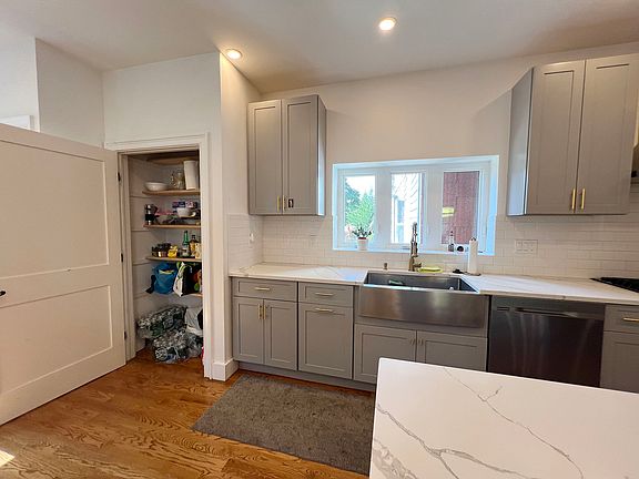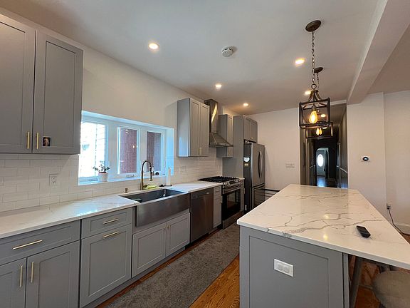 AVAILABLE OCT/NOV: Spacious first-floor 3BR, 1BA unit in Eagle Hill! This remodeled gem features a private entry, leading to a large hallway with a storage closet. The bow-fronted first bedroom is charming, with the second bedroom boasting 2 closets, and the third is perfect for a king or queen bed. The rear of the unit offers an open-concept living, dining, and kitchen area that opens onto a patio and yard. Custom shower and laundry in bath. Unit showcases new hardwood flooring, modern lighting, and stylish kitchen w/gray cabinets, Quartz counters, and a 4-person island. Stainless steel appliances, including a gas stove, and a pantry complete the space. Window AC units included. Conveniently located 0.6 miles from Airport Station, close to bus routes, Condor Urban Wild, American Legion Park, and highway access. Tenant responsible for heat, hot water, and electricity. First, security, and broker fee due at lease signing. Credit score 650+ and verifiable income required. Pets neg. Tenants responsible for gas for heat/hw, and electricity. First, security and one month broker fee due at lease signing. Tenants must have credit 650+ and stable verifiable income. Rent should not exceed 30% of their income.