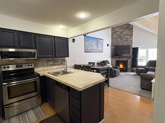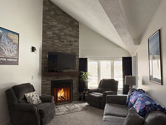 Welcome to Pico Unit D403—a true ski-in, ski-out one-bedroom top-floor mountain escape located at the base of Pico Mountain. Upon entering D403, a sense of ease and calm immediately embraces you. The refined elegance, thoughtful design, and carefully appointed furnishings make this residence a standout. Enjoy the unobstructed north-facing mountain views on your private deck while stargazing in the evening or taking in the morning views over coffee, tea, or while relaxing with après-ski cocktails. D403 features vaulted ceilings, new flooring, partial carpeting, and a wood-burning fireplace framed with Airstone that rises nearly 14 feet, matching the kitchen backsplash and lower counter accents. This unique detail adds to the home’s sophistication and style. The owners have never rented out this unit; however, it would make a great home, investment property, or combination rental/home. D403 will be sold fully furnished and equipped. Rents for this unit will command a premium price. Plus, D403 is in an elevator building, ideal for deliveries and heavy packages. Stairs are also available. Steps from the Golden Express Chairlift. Walk to the lodge, ski rental shop, or the fitness center with indoor pool (sm fee). Enjoy alpine touring and snowshoeing. Complimentary shuttle to Killington Mt. Summer and fall, enjoy hike-in/hike-out access, golf, mountain biking, kayaking, and fishing—all just minutes away. Call today for a showing!
