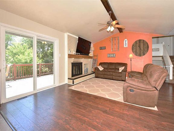 Everyone is certain to adore this terrific 3 bed/2.5 bath brick-front residence the moment you pull up! The covered porch welcomes you home & into the formal entry foyer where dual pocket doors open to the formal living room & the adjacent dining room providing ample space to greet & entertain guests. You'll marvel at the huge great room featuring a soaring cathedral ceiling with exposed beam, towering floor-to ceiling brick fireplace & sliding glass walk-out to the big elevated deck with a gorgeous view of the sprawling fenced-in yard backing to wooded common grounds. The chef in you will enjoy the bright & inviting eat-in kitchen that boasts a large center island, breakfast bar, stone & glass tile backsplash, stainless appliances & recessed lighting. Ultra-convenient main floor laundry & powder room. Spacious master suite with 3 closets & a private full bathroom. The LL has a sliding glass walk-out to the patio & is ideal for finishing. Long private driveway & oversized 2-car garage!