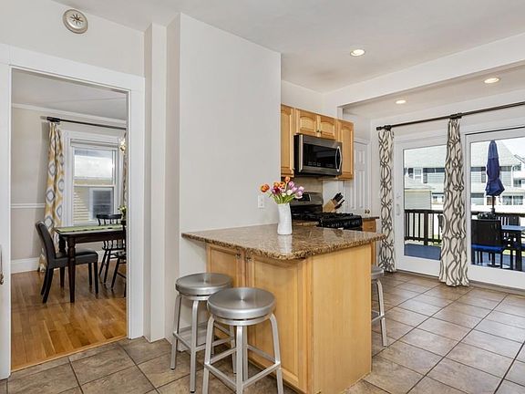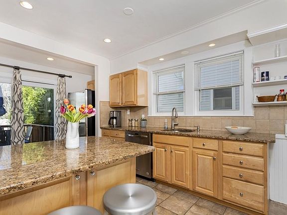 - Kit Dscrp: Main Level, Dining Area, Countertops - Stone/Granite/Solid, Deck - Exterior, Flooring - Stone/Ceramic Tile, Breakfast Bar / Nook, Stainless Steel Appliances, Recessed Lighting, Slider, Exterior Access, Bathroom - Half, Gas Stove, Peninsula