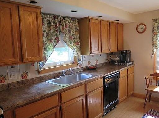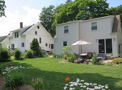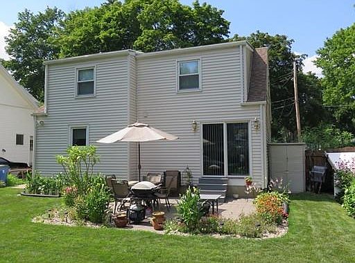 Immaculate home and gardens! Beautifully updated home with replacement windows (many Pella), roof, and vinyl siding - all updated in the past 10-12 years. Open floor plan with dining room, living room and family room open, lovely kitchen with newer flooring, all the appliances, oak cabinets, stove, refrigerator, dishwasher and microwave to remain. Some furnishings may also remain for the prospective Buyer. Full basement with washer and dryer, and finished room. Gas furnace, gas hot water heater, and updated electric box. Second floor with dormer offers a large master bedroom with half bath and closet, second bedroom and a walk-in hall closet. Current owners used finished room in basement as third bedroom. Battery operated alarm system.