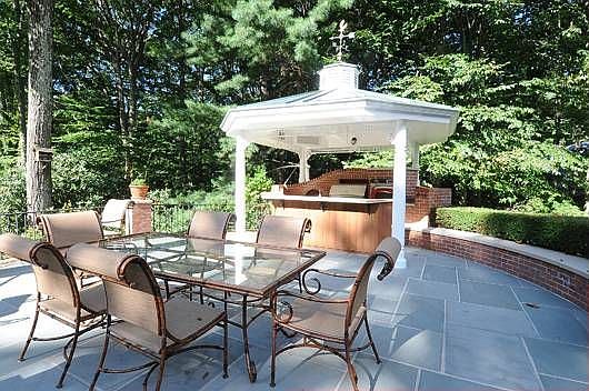 For more information on this property, contact William Raveis Real Estate, Mortgage & Insurance at 1-888-699-8876 or contact@raveis.com. Perched atop a private wooded 2.6 acre lot in the prestigious Round Hill Section of Greenwich, this custom-designed home is a stellar example of class architecture and modern living. 4 generously- sized bedrooms include the extensive Master Bedroom suite with fireplace, custom walk in closet, spa bath and home theater. Large gourmet kitchen with center island and stained glass inlaid cabinetry and skylight leads to a to the wonderful sunroom with imported atrium overlooking the exquisite pool terrace and tree-lined lawn. This magnificent property boasts a fenced tennis court with gazebo and a fully- equipped outdoor kitchen- perfect for entertaining. A whole-home generator and electrical service for a hybrid car are added amenities. An exquisite country estate of lasting splendor.